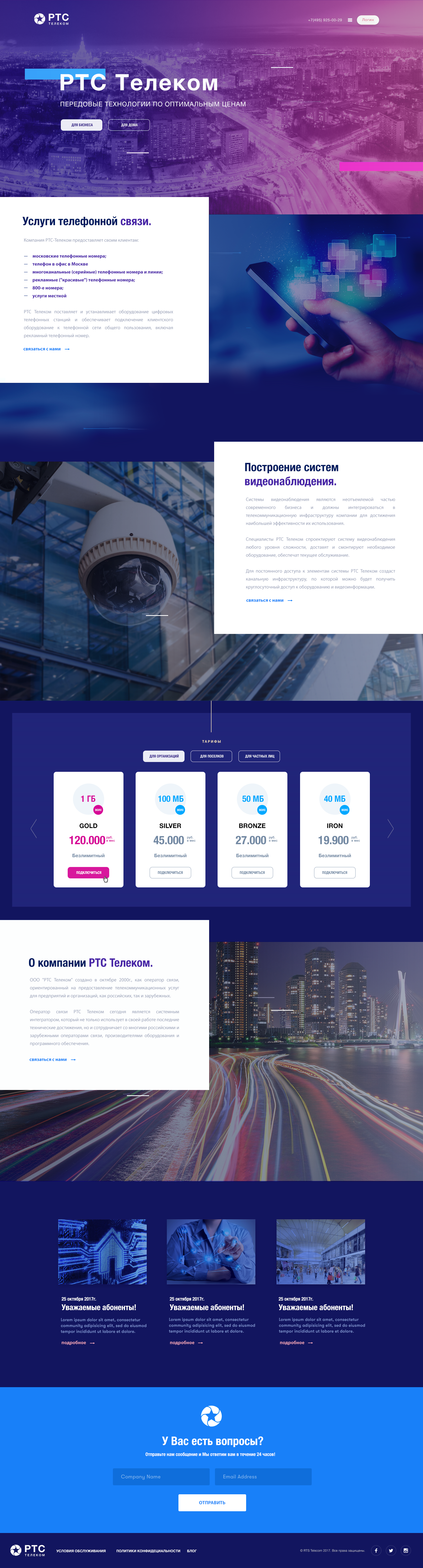 ООО “РТС Телеком” создано в октябре 2000г., как оператор связи, ориентированный на предоставление телекоммуникационных услуг для предприятий и организаций, как российских, так и зарубежных.